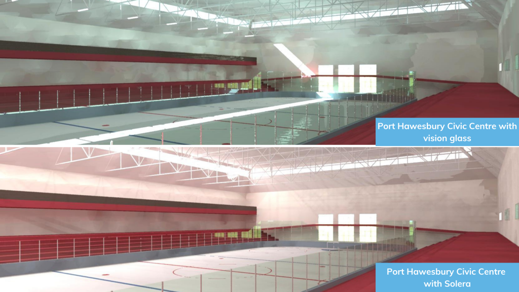 Port Hawkesbury Civic Centre hockey arena features natural daylight – something rarely done for this type of space. The town council asked the question ‘could we get natural daylight in the building for the hockey arena?’ and Ojolick Architects delivered by using Solera, an engineered daylight diffuser manufactured in nearby Sydney, Nova Scotia. “This space is rented out for every type of event – not just hockey. The town wanted a daylighted space as an asset for the community to use and enjoy. The building owner was conscious of interior lighting in the arena space. The lights are turned off early in the morning and stay off until 3 or 4pm. This provides the centre and town with substantial savings to their power bill” says Ojolick. It also became the marquis feature in a facility with many green elements, because, in addition to saving energy, daylighting has such a positive impact on occupant experience and aesthetics.